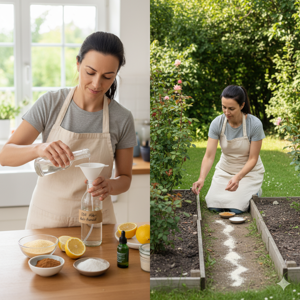 Materialele naturale, ușor de găsit în România, pot fi integrate cu stil în orice tip de grădină. Scorțișoara, creta și oțetul se găsesc în orice magazin alimentar, iar frunzele de nuc sau cenușa de lemn provin deseori din gospodărie. Diatomitul, deși mai puțin cunoscut, se poate achiziționa online sau din magazine specializate.
